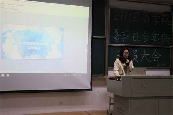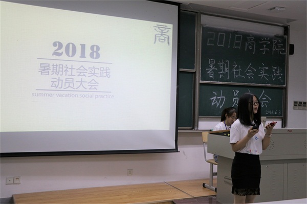 会上,学院团委组织部负责人结合校团委《关于组织开展2018年嘉兴学院“双百双进”活动暑期集中性社会实践活动的通知》相关要求,详细介绍了暑期社会实践活动各项安排的参与要求、申报程序和时间安排,分析讲解了项目式实践活动、菜单式专项实践和“改革开放40周年”专项课题项目等各大主题的要点和重点、立项评比与学院支持的准则要求,希望各班级积极动员全体同学踊跃投身到暑期社会实践中来。会上,还邀请了去年暑期社会实践优秀团队负责人作了经验分享,就一个具体的暑期社会实践项目从设想、策划到具体活动过程、成果总结、答辩汇报进行一一解析。