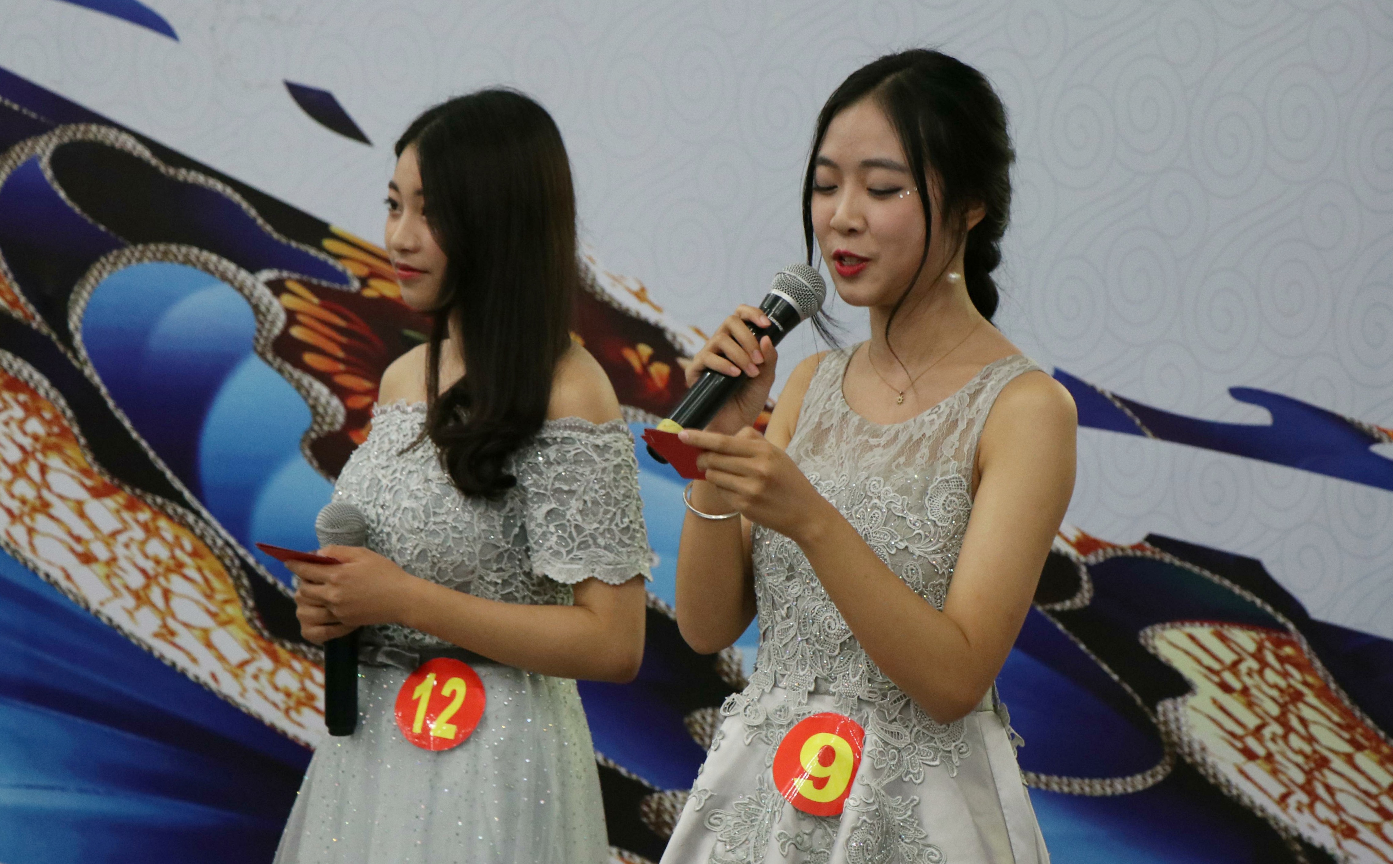 学生会主席张欢欢同学等担任评委。大赛分为两两搭配、个人展示、才艺展示、临场应变四个环节。比赛精彩纷呈,整个报告厅内散发着语言魅力,飞扬着自信风采,洋溢着青春活力。13位选手也都展现出了扎实的语言功底、良好的应变能力以及精彩的才艺,不时地赢得在场观众和评委们的热烈掌声。经过近3个小时的激烈角逐,周心甜、王潇、施羽分别获得本次比赛的一、二、三等奖。