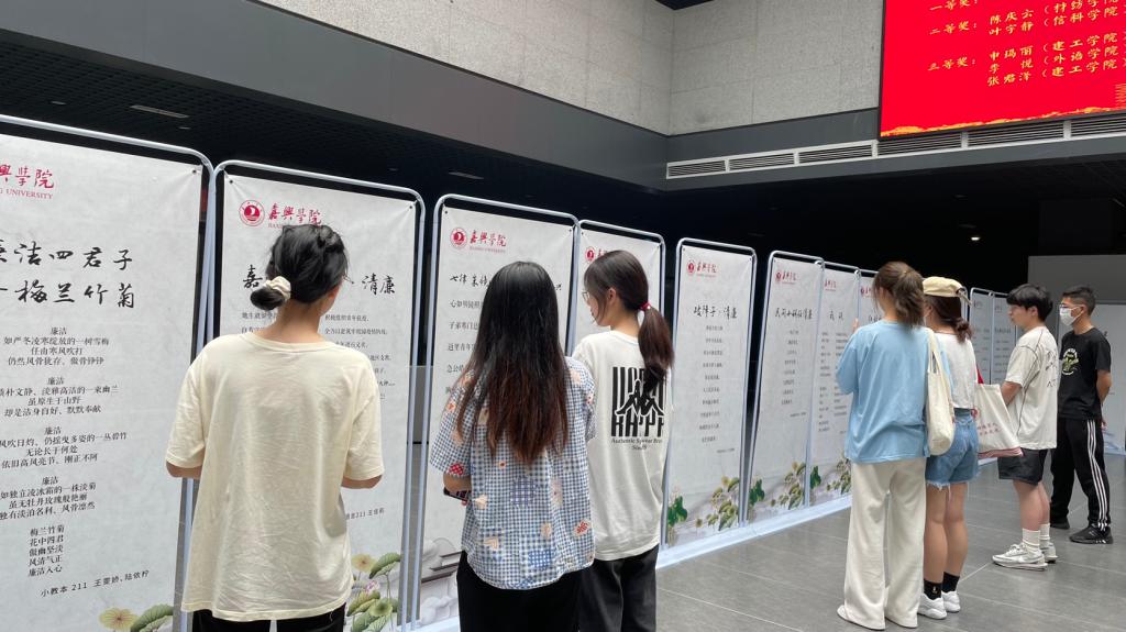 李黎、陆晨晨老师分别以《新时代青年大学生的责任与担当》、《初心·苦难·辉煌》为题进行主题授课;团委学生会宣传部俞诗音、陈朝敏同学带来了新媒体实操经验分享;青马班五个小组分别就各自的研究课题做交流汇报;集训在参观“诗说清廉”诗歌作品展中圆满落幕。希望全体青马班学员通过学习都能成为政治立场坚定、作风过硬、素质全面、廉洁自律的综合性人才!