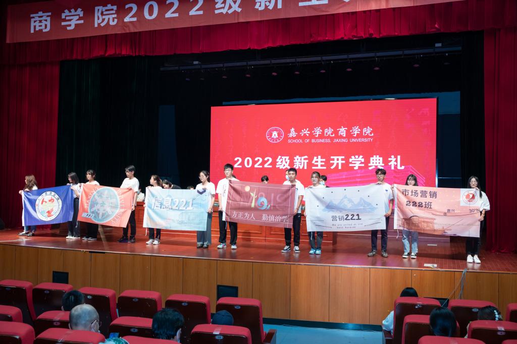开学典礼上,学院还为新生班主任及助理辅导员发放了聘书,新生各班代表也为师生们展示了自己亲自设计制作的班旗,表达了他们对大学未来四年的憧憬和期许。