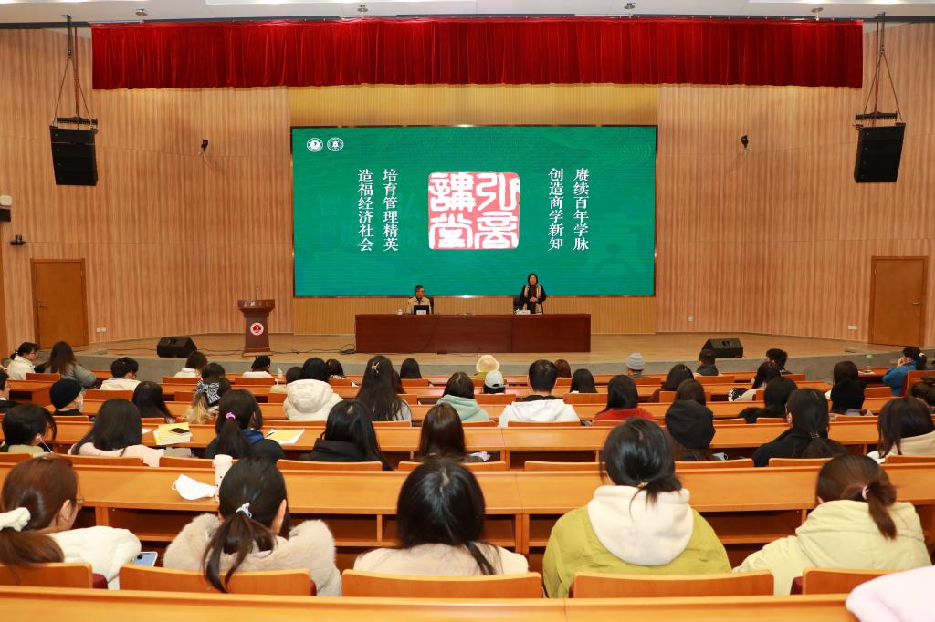 82届工业会计专业优秀校友、“中国首席财务官研究院”院长、中国有色行业财务与会计专业委员会副主任,曾任全球第一大三地上市铝业公司(中国铝业股份有限公司)首席财务官兼董事会秘书张占魁来院作“百年母校筑辉煌 学子归来仍少年”的主题报告。学院院长潘煜双主持,副院长李郁明、教师代表以及150余名学生到会聆听报告。