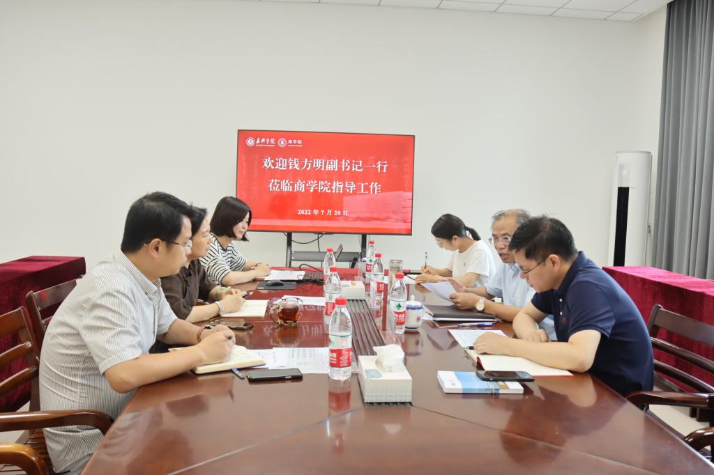 720日下午,校党委副书记钱方明到91视频 开展2022届毕业生就业工作调研,学生处处长葛建伟、就业科苏悦随同调研。学院院长潘煜双、党委副书记潘欣和相关辅导员参加了会议。