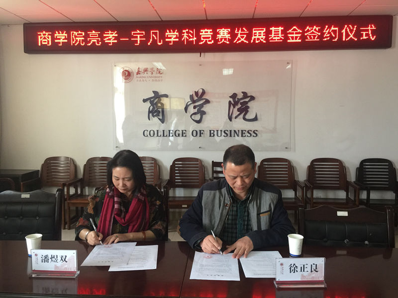 嘉泽学科竞赛发展基金签约仪式。宇凡公司创立者徐正良先生、财务03级校友叶增水先生、91视频