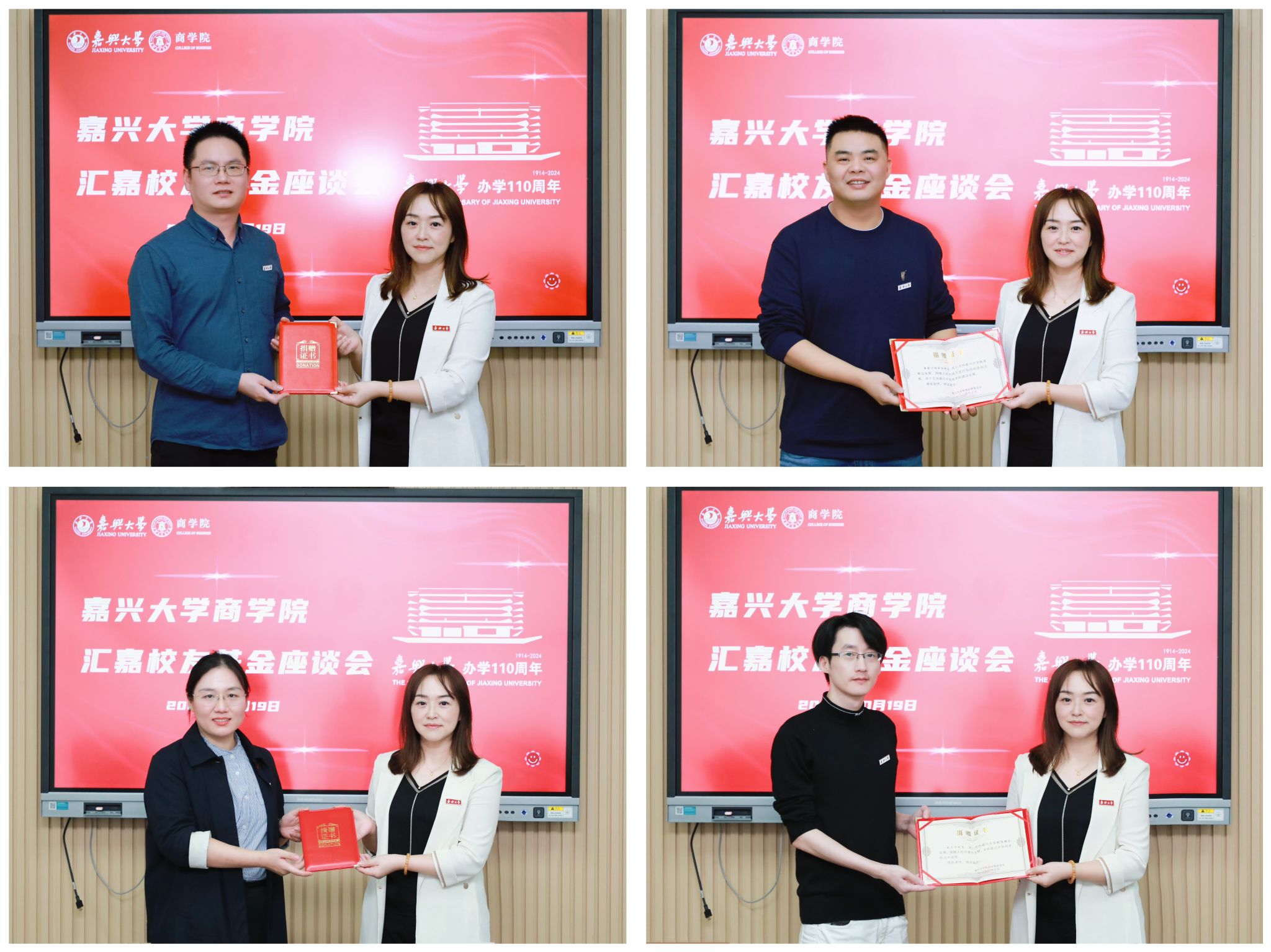 座谈会上,虞岚还代表学院为各位校友颁发了捐赠证书。