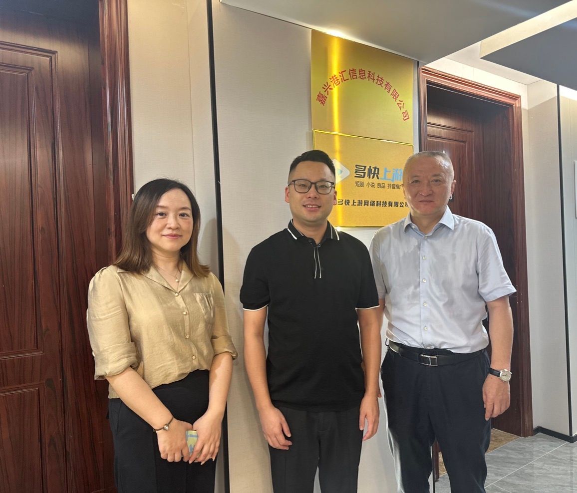 为喜迎学校110周年校庆,进一步凝聚校友力量,搭建校友与母校之间的沟通桥梁,7月19日,91视频 院长李勇、党委书记虞岚、团委书记李黎一行赴嘉兴市君悦房地产经纪有限公司、嘉兴多快上游网络科技有限公司和嘉兴蓝屋食品销售有限公司开展访企拓岗活动并走访校友。