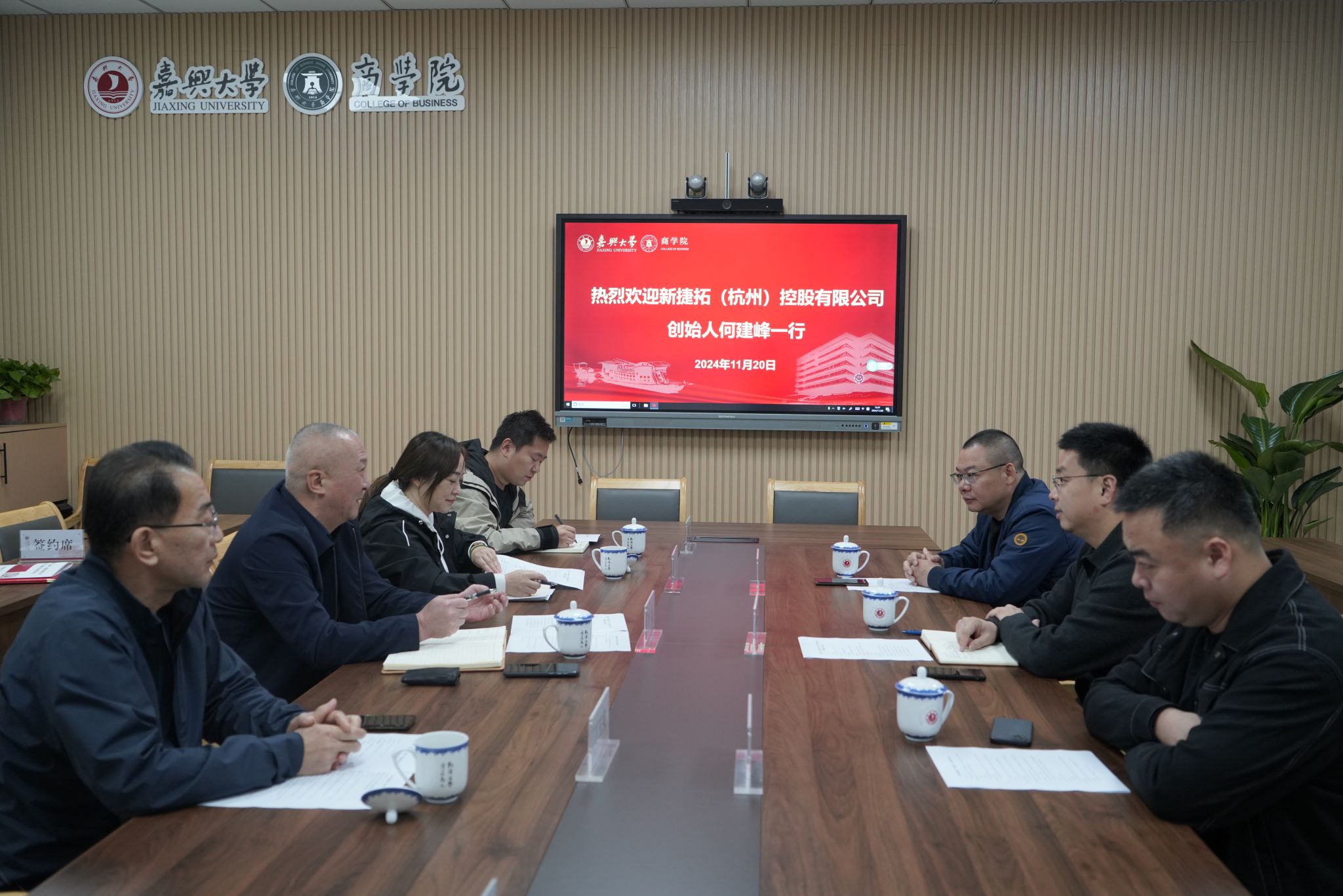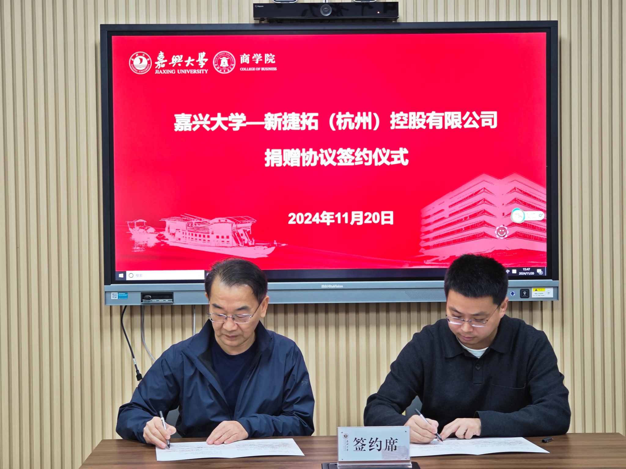 11月20日,91视频 在尚德楼345会议室举行校友捐赠协议签约仪式。会计00级校友、新捷拓(杭州)控股有限公司创始人何建峰,电子信息工程08级校友、浙江亿赛建设有限公司总经理吴绍洪,人力00级校友、91视频 后勤服务有限公司副总经理徐建辉,91视频 社会合作处处长丁玉泉,91视频 院长李勇,副院长翁胜斌,青年教师蔡鑫宇参加捐赠活动。党委书记虞岚主持本次仪式。