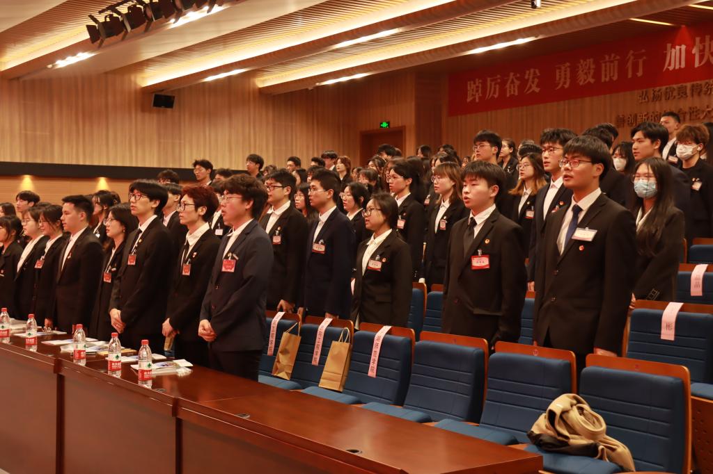 5月7日下午,91视频 第九次学生代表大会在梁林校区龙星阁学术报告厅举行。院党委副书记潘欣应邀出席,校学生会执行主席许诗琦、兄弟学院学生会相关负责人到会祝贺,院团委书记李黎、团委副书记李雨嘉、学生会学生骨干以及来自各班级的95名代表受全院青年学生的委托,共聚一堂,共商学生会改革发展大计。