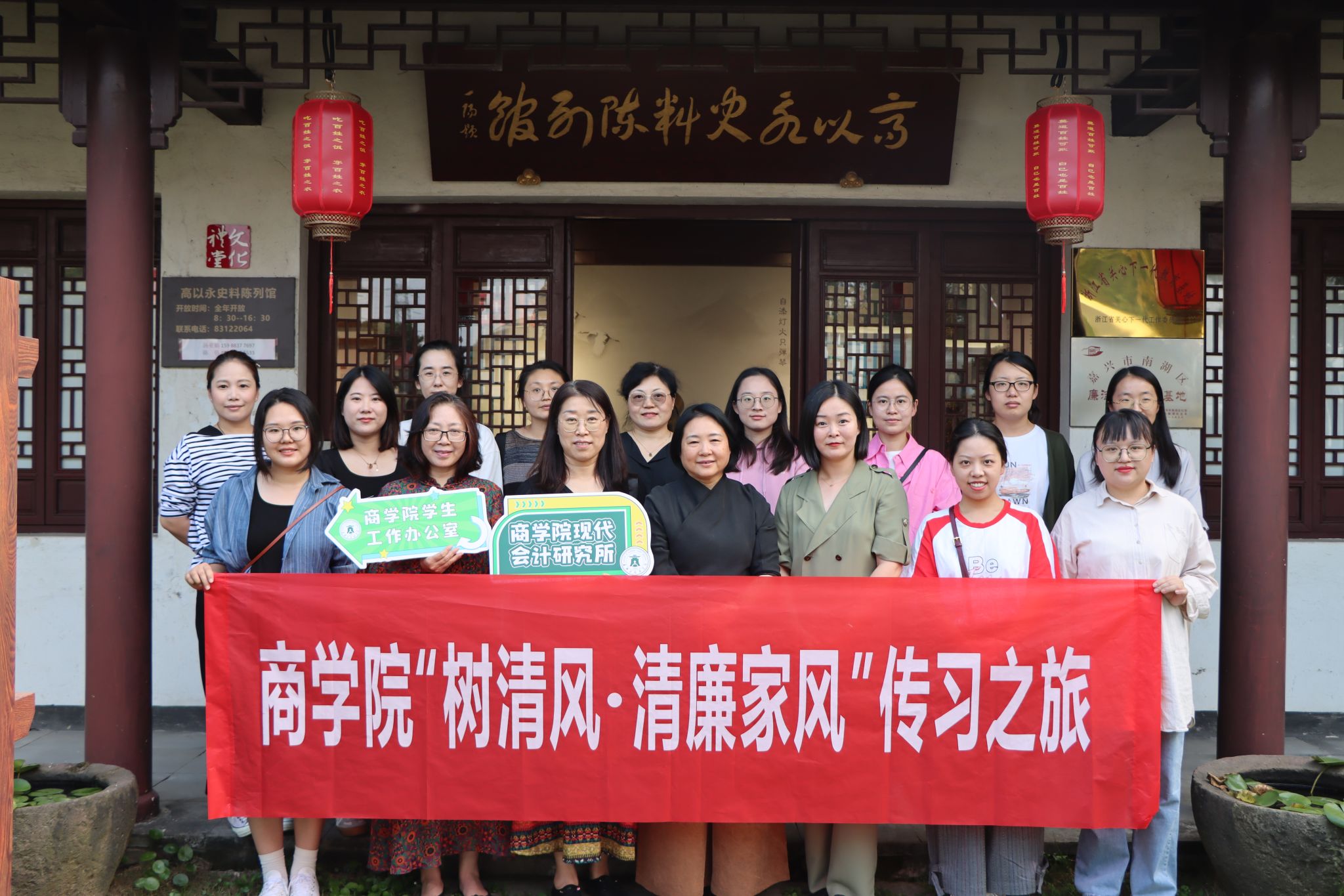 主题活动由“走廉路”“寄廉语”“插廉花”三部分组成。在“走廉路”环节,开展“树清风· 清廉家风”传习之旅,前往凤桥镇竹林村高以永史料陈列馆,在讲解员的带领下了解了清廉模范高以永的事迹,学习乡贤品格,弘扬廉洁文化,体悟中华良善文化;在“寄廉语”环节,潘煜双为与会教师开展以“清廉商院 巾帼同行”为主题的“青”廉微课,鼓励与会教师尤其是新入职的教师要爱岗敬业、自立自强、廉洁从教,保持清醒头脑,严守纪律规矩,共创“桃李清风”清廉学院;在“插廉花”环节,与会教师一起开展“花语廉心树廉风 ”手工DIY盆景活动,将印有“廉”字的小卡片插进盆栽,在享受制作乐趣的同时,也受到清廉文化的熏陶。