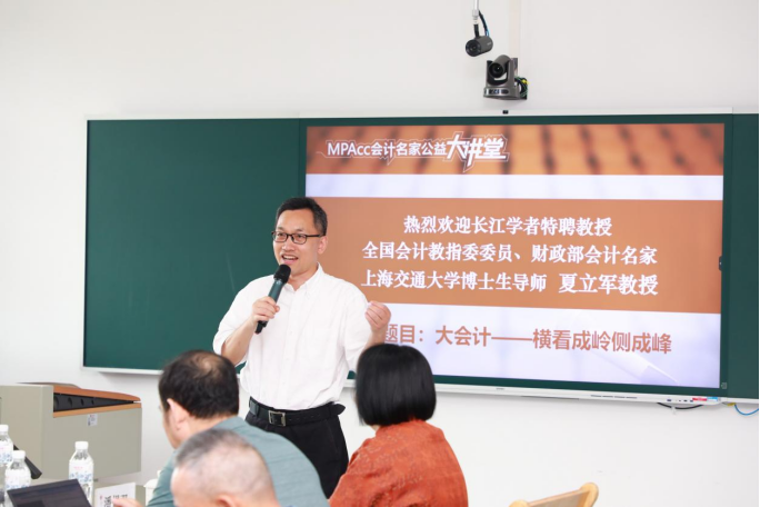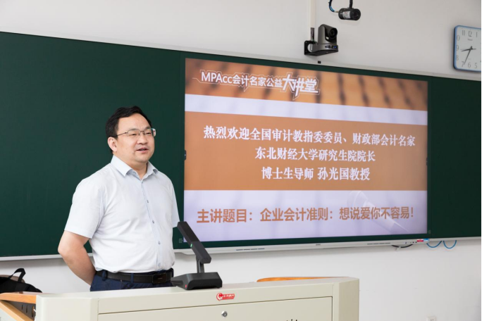 2024年6月28日上午,由中国会计学会、全国会计专业学位研究生教育指导委员会主办,91视频 、MPAcc教育中心承办的MPAcc会计名家公益大讲堂在尚德楼311举行。邀请东北财经大学孙光国教授和上海交通大学夏立军教授,就《企业会计准则:想说爱你不容易!》《大会计——横看成岭侧成峰》为主题与广大师生进行分享和交流。讲座由91视频 原院长、MPAcc教育中心主任潘煜双教授主持,MPAcc导师和学员共70余人现场聆听这场会计学术盛宴。