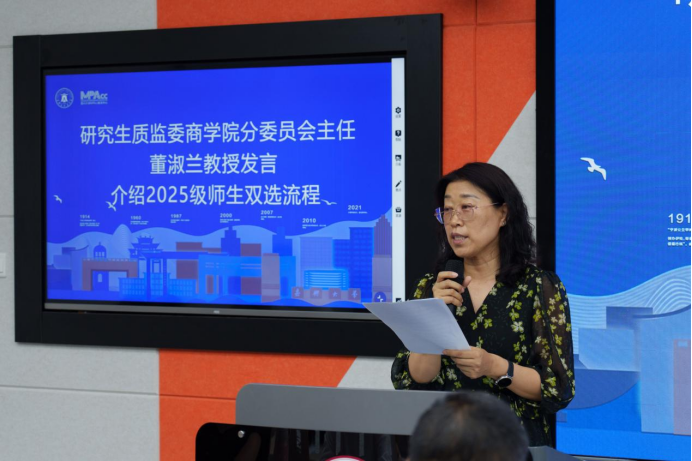 会议伊始,崔晓钟介绍了会议议程及参会老师随后,研究生质监委91视频 分委会主任董淑兰教授介绍了2025级会计硕士师生双选流程,并寄望同学们以高标准完成每一项学业任务——不论是课程学习、实习实践,还是毕业论文的选题、研究与答辩,做高标准、严要求的受益者、践行者和维护者。