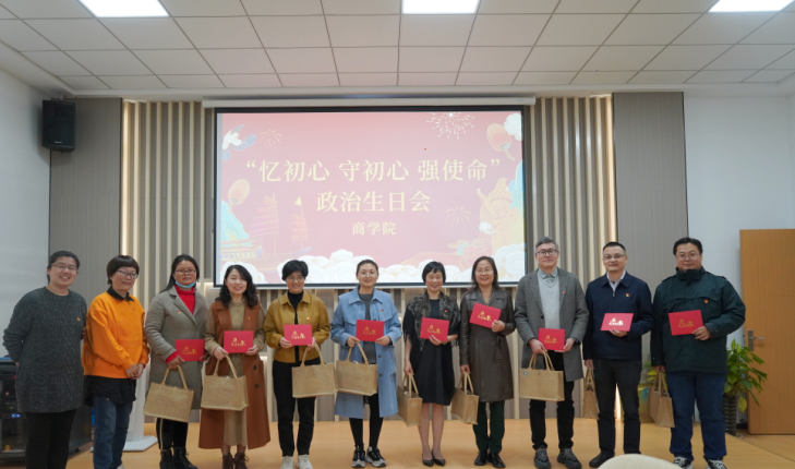 在“分享政治生日感悟”环节,入党30年的张惠忠老师再次向党郑重承诺,要始终以共产党员标准严格要求自己,“做好老师,做好人”。入党25年的李郁明老师说,过政治生日,感受到的是神圣、责任和使命,他表示今后将继续不忘初心,为教育事业添砖加瓦。入党20年的郭如平老师则回顾了自己工作之初在“红色支部”入党时的情形,感谢党的领导、感谢组织的培养,感恩好时代,她表示要珍惜当下,做新时代的“四有”好教师。入党5年的徐静老师说第一次过“政治生日”,使命感油然而生,将坚守理想信仰,以百年商科精神激励自己不断前行。