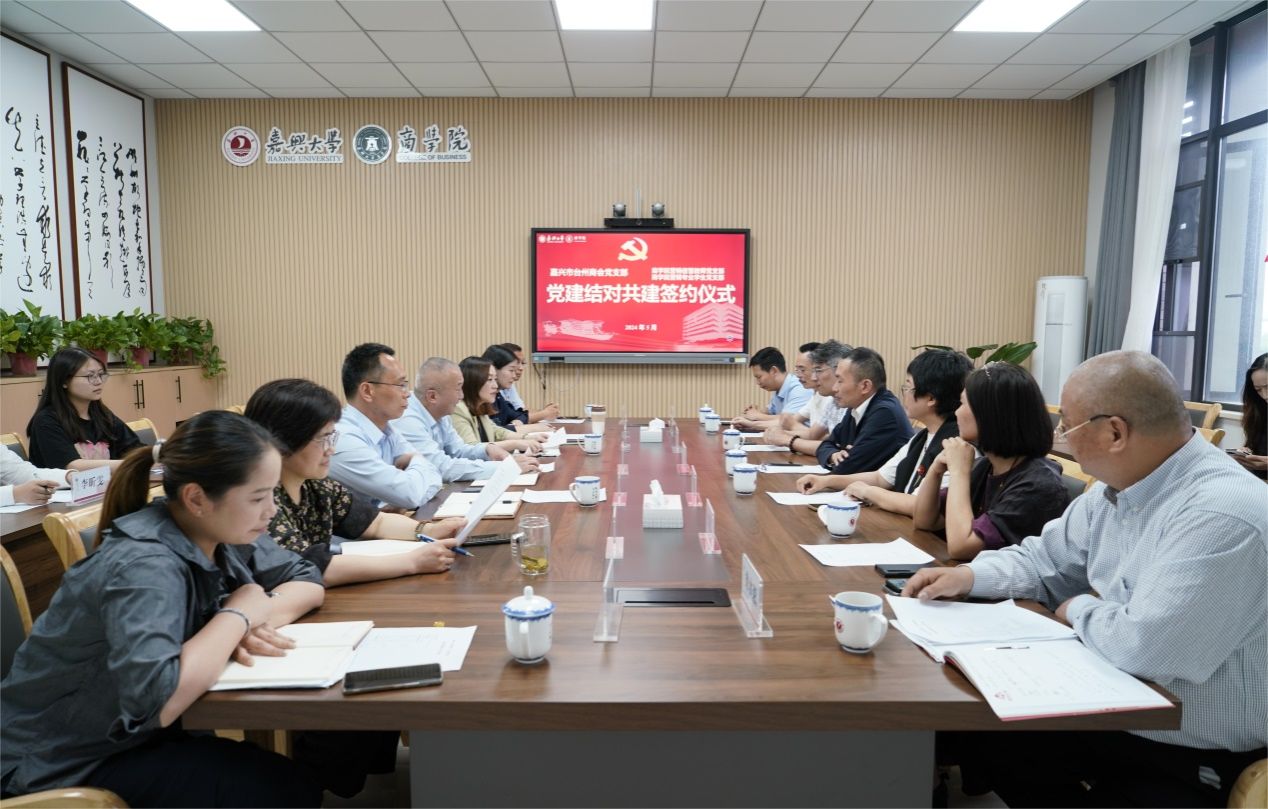 531日下午,91视频 营销信管教师党支部、营销专业学生党支部与嘉兴市台州商会党支部在91视频 尚德楼345会议室举行党建结对共建签约仪式。