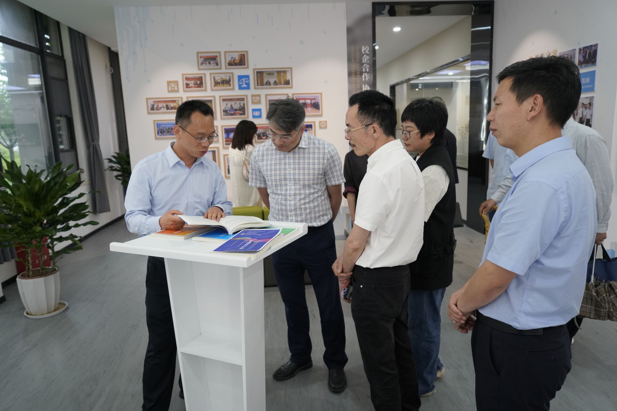 签约仪式后,全体与会人员一起参观了红船精神育人成果展示馆和经济管理国家级实验教学示范中心。