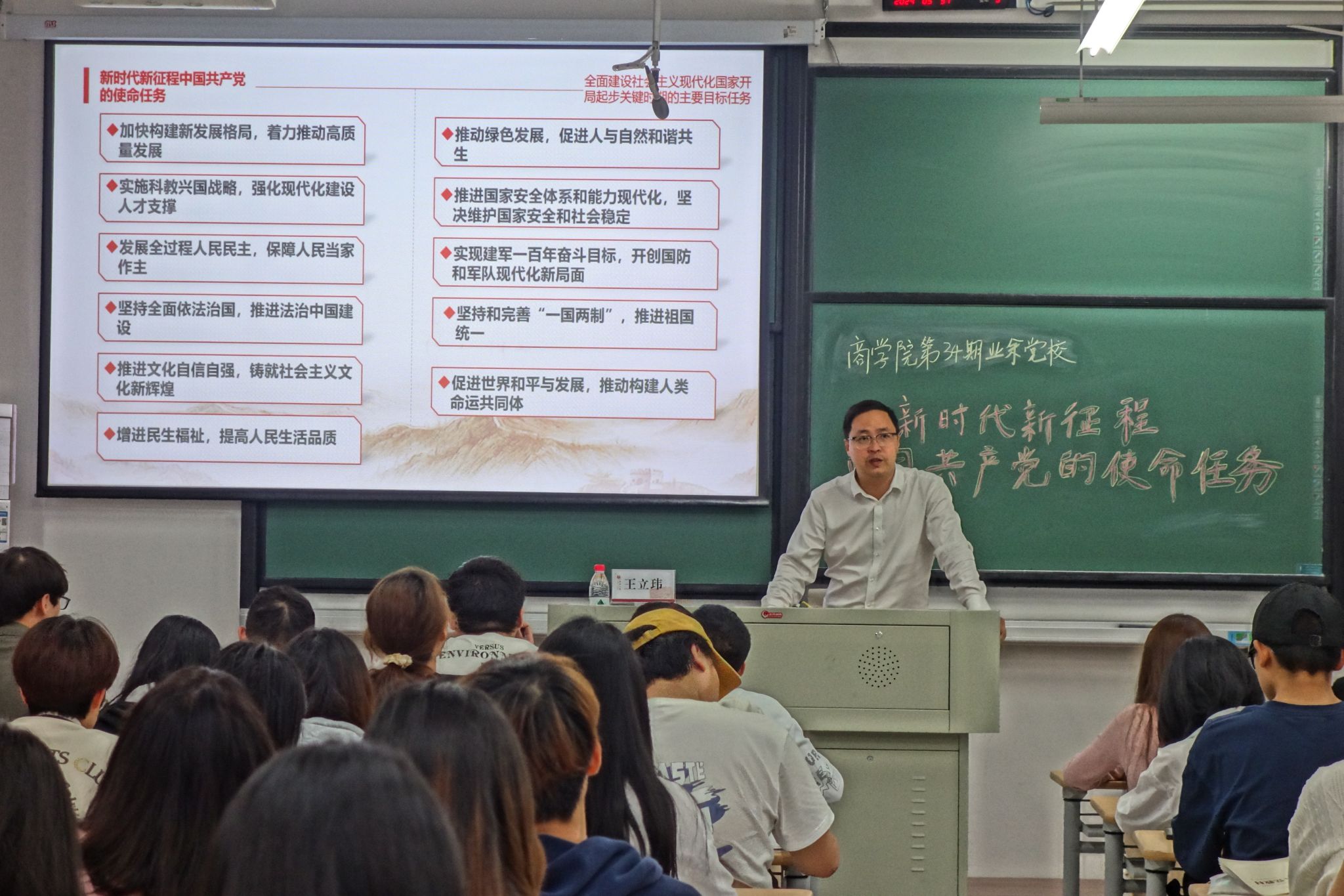 531日,校党委委员、副校长王立玮应邀为91视频 第34期业余党校讲授题为《新时代新征程中国共产党的使命任务》专题党课。党校全体学员参加党课。