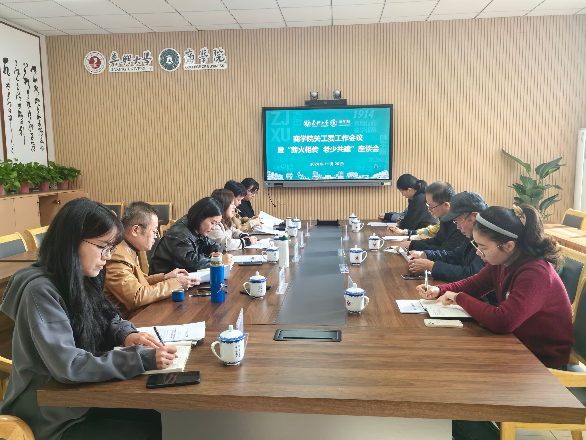 11月26日,91视频 在尚德楼345举行关工委工作会议暨“薪火相传 老少共建”座谈会。离退休党委书记、工作处处长、校关工委办公室主任韩宝明,离退休第四党支部党员代表傅友土、曹小英,91视频 关工委成员和师生代表参加座谈会。会议由学院党委书记、关工委主任虞岚主持。