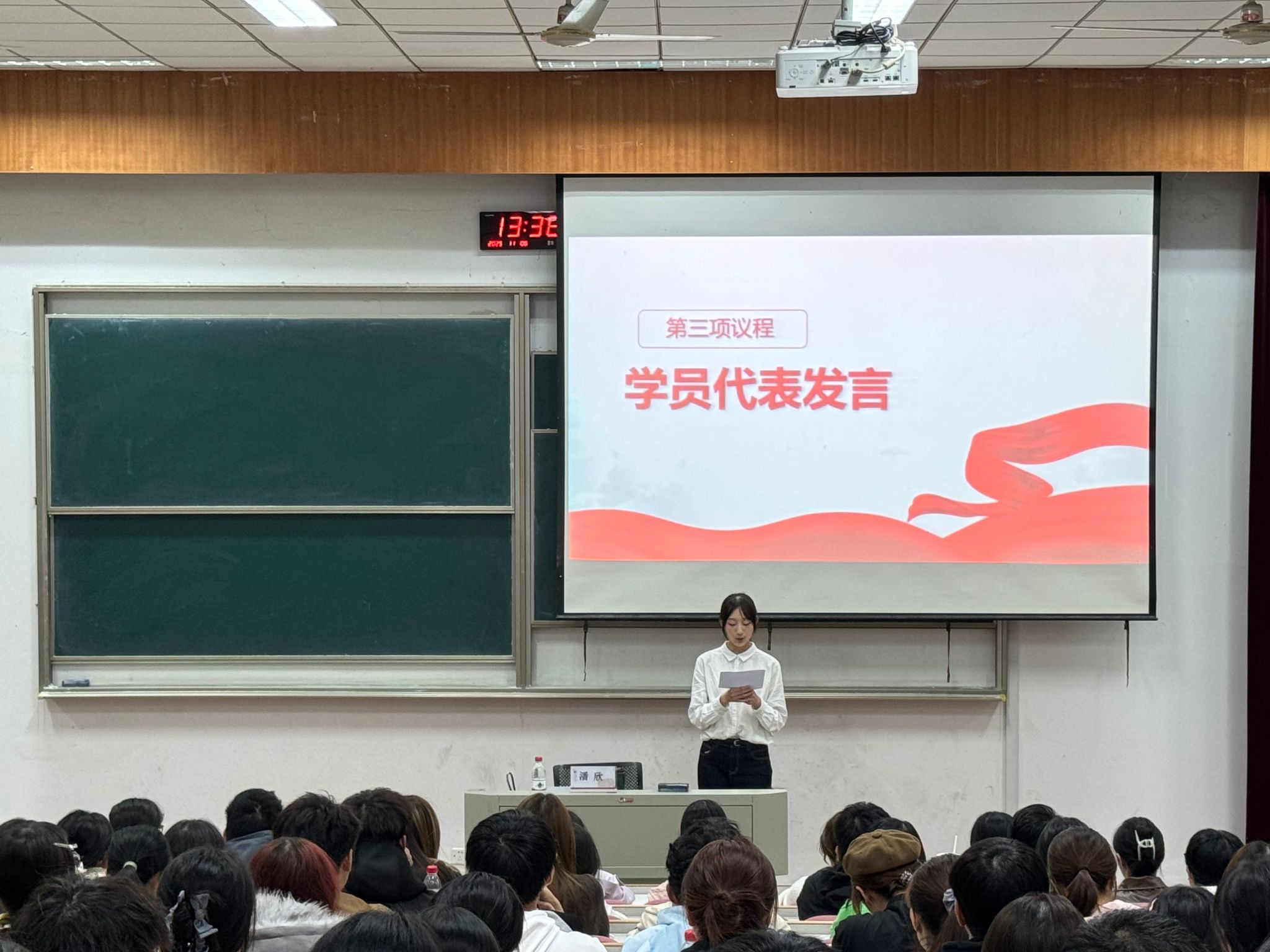 典礼在雄壮的国歌声中拉开帷幕。全体学员肃立致敬,展现了昂扬向上的精神风貌。潘欣副书记在典礼上作动员讲话,她以精炼而富有感召力的语言,鼓励全体学员珍惜学习机会,深化对党的认识,端正入党动机,坚定理想信念,以实际行动向党组织靠拢。学员代表陈绮璇同学表达了全体学员追求进步、向党组织积极靠拢的坚定决心和崇高信念。班主任李艳燕老师就本期党校的教学安排、学习要求及纪律规范作了详细说明,为培训工作的有序开展奠定了坚实基础。