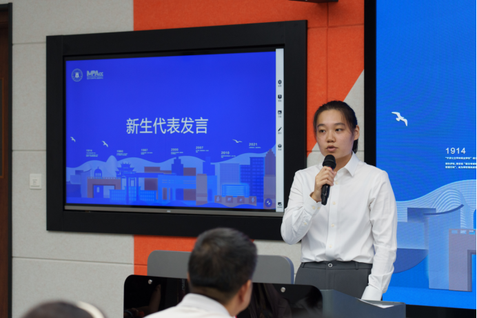 我是2025级新生代表祝婧,非常荣幸能在这个寓意着启航与收获的季节,与各位老师和同学相聚于此。首先,请允许我代表2025级全体会计研究生新生,向为我们提供宝贵求学机会的商学院、向即将引领我们步入学术殿堂的各位导师,致以最诚挚的感谢和最崇高的敬意!